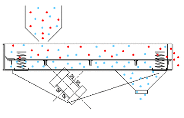 鑄造砂篩選機是雙振動電機驅(qū)動。當(dāng)兩臺振動電機做同步、反缶旋轉(zhuǎn)時,其偏心塊所產(chǎn)生的激振力在平行于電機軸線的方向相互抵消,在垂直于電機軸的方向疊為一合力,因此篩機的運動軌跡為一直線。兩電機軸相對篩面有一傾角,在激振力和物料自重力的合力作用下,物料在篩面上被拋起向前作直線運動,從而達(dá)到對物料進(jìn)行篩選和分級的目的。